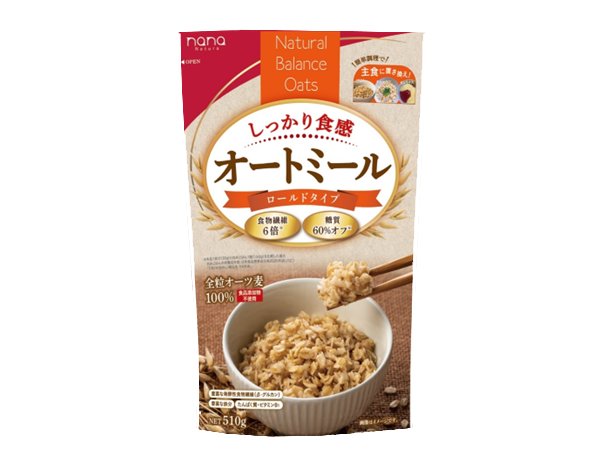 オーツ麦を蒸してから平らに押しつぶしたもので、調理が比較的簡単で、柔らかな食感が特徴。
